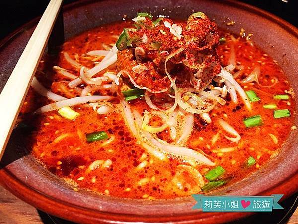 在門口看到麻辣豚骨麵,另一友人便躍躍欲試,想來挑戰到底有多辣。瞧瞧這碗紅紅辣辣的湯頭,上方還灑落無數的辣椒粉,我一看到就舉旗投降,不過無辣不歡的友人卻吃得津津有味,畢竟很少有麻辣湯頭的拉麵,口味特殊且新奇,他說如果可以再辣一點更好。