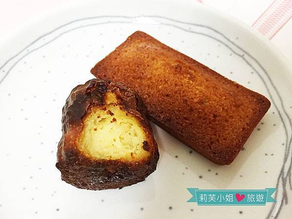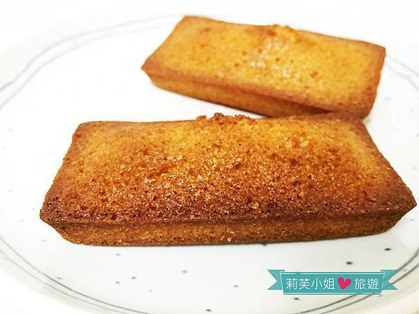 表面微微濕潤,咬下能感受到鬆軟的口感,又帶點萊姆酒的香氣,費南雪略甜的滋味,建議搭配咖啡或熱茶一起享用,才不會太甜過膩。