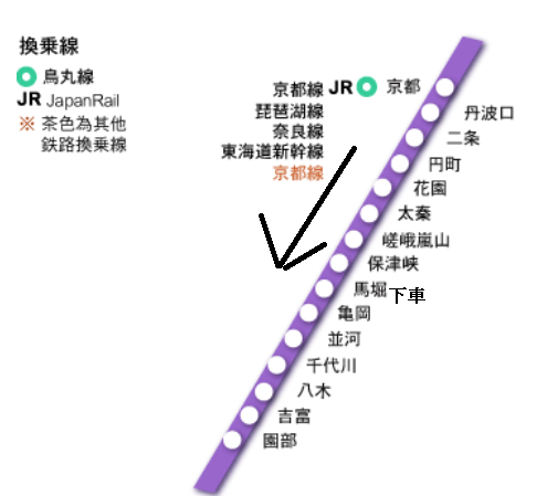 我: 好了! 我看到前面的牌寫著南久宝寺町2, 我們快到了吧?