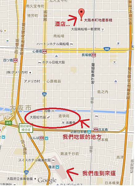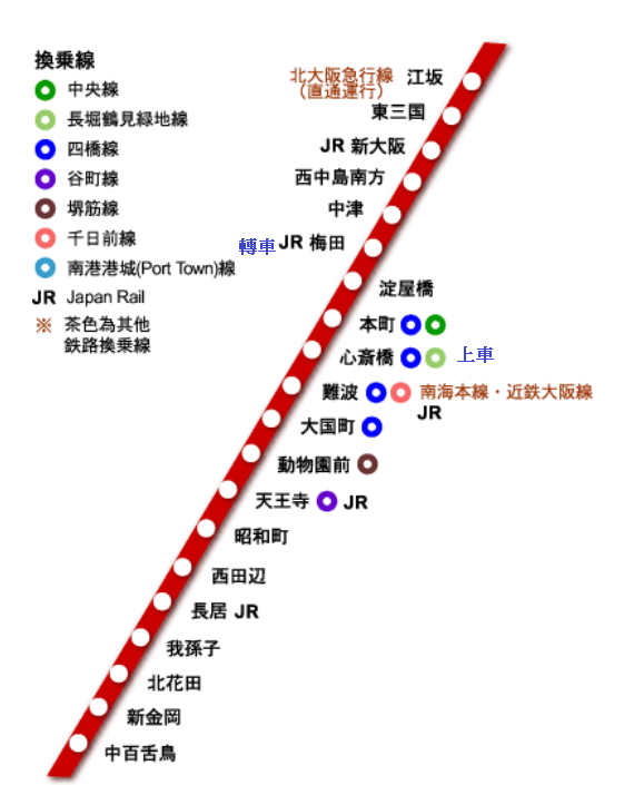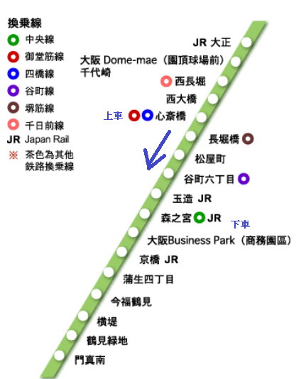 到了天下茶屋再轉堺筋線到長堀橋駅下車尋找酒店