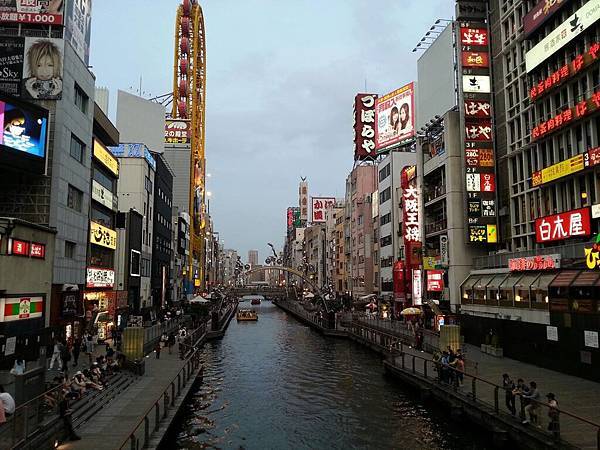 一直再往下走直至過了河後, 那兩旁就是道頓堀啦 (吃東西都在這裡就對了!)