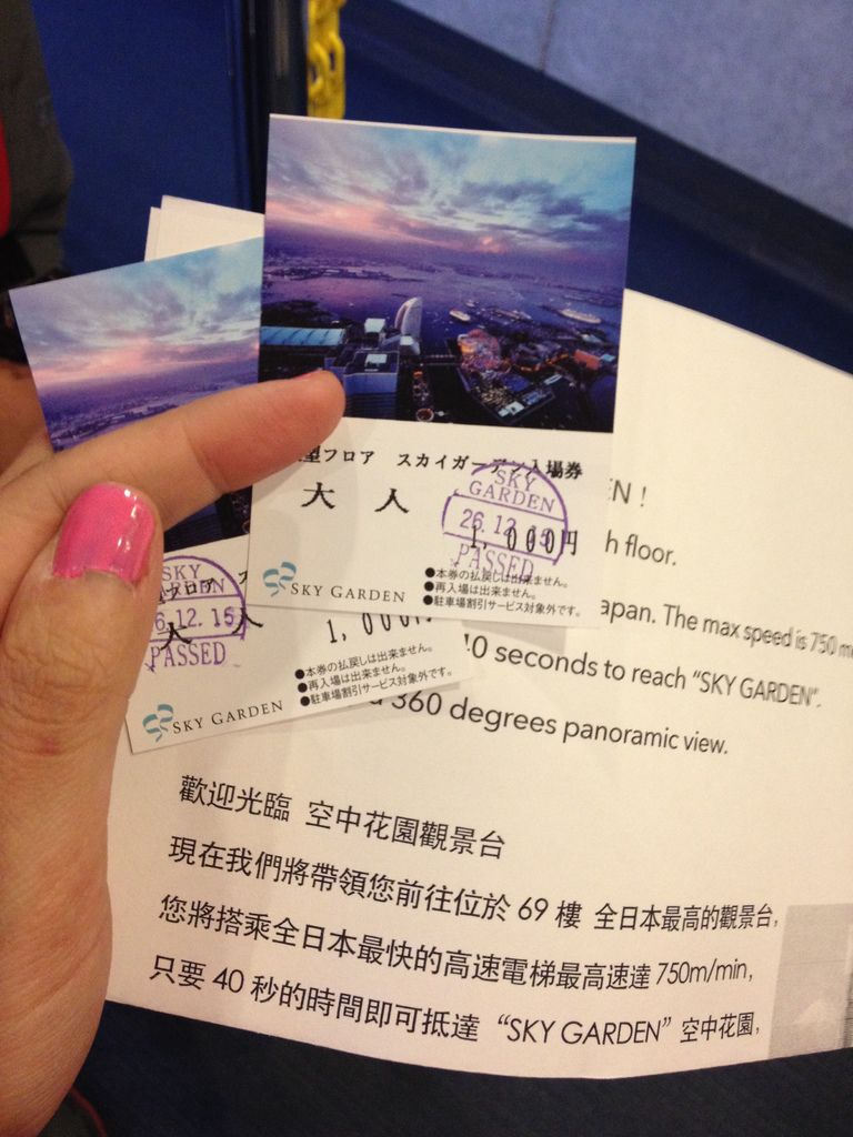 橫濱Sky Garden位在273公尺的高度,擁有360度環視夜景,搭乘電梯的地方就在Harbs對面,邊吃蛋糕我就邊看到他的標示了XD 不用另外花費心思去尋找。