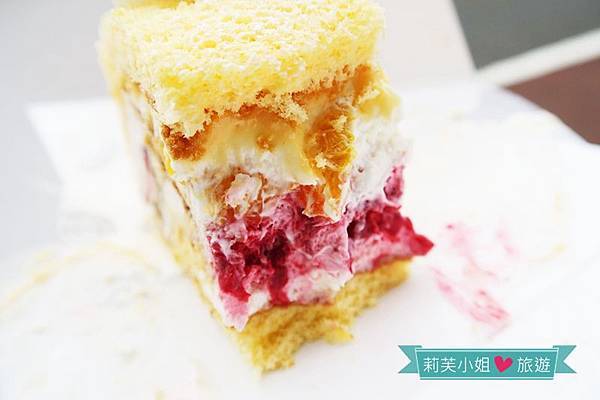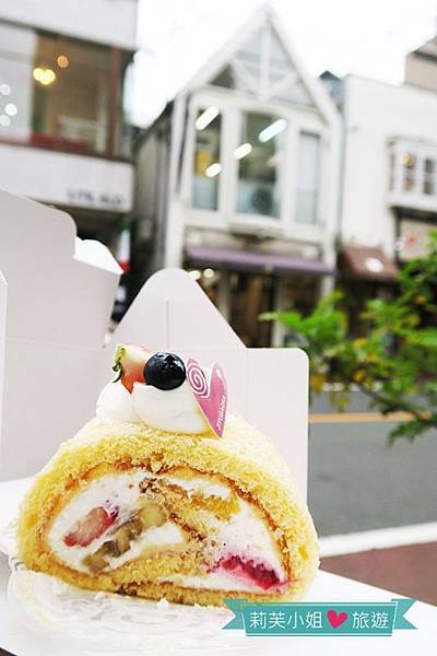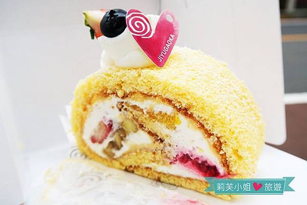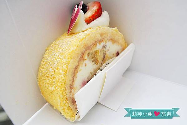 甜而不膩的奶油搭配濕潤的水果配料,以及覆蓋的蛋糕捲皮,入口後不會覺得滿是奶油味,反而有一種清爽的感覺。最讓人驚艷的就是奶油跟水果都保有水份,不過蛋糕捲卻是偏乾還看得到氣孔,完全沒有被水份滲入變得濕黏而影響口感。