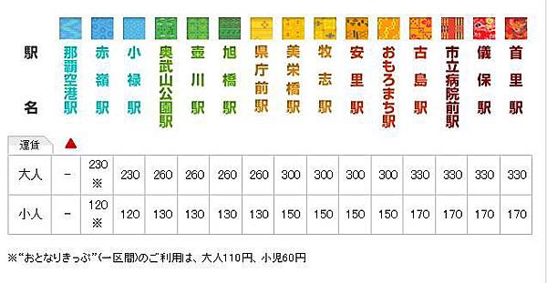 是$60元,如果是從那霸機場站到牧志站,則成人票價是$300元、兒童票價是$150元,這樣清楚了吧。