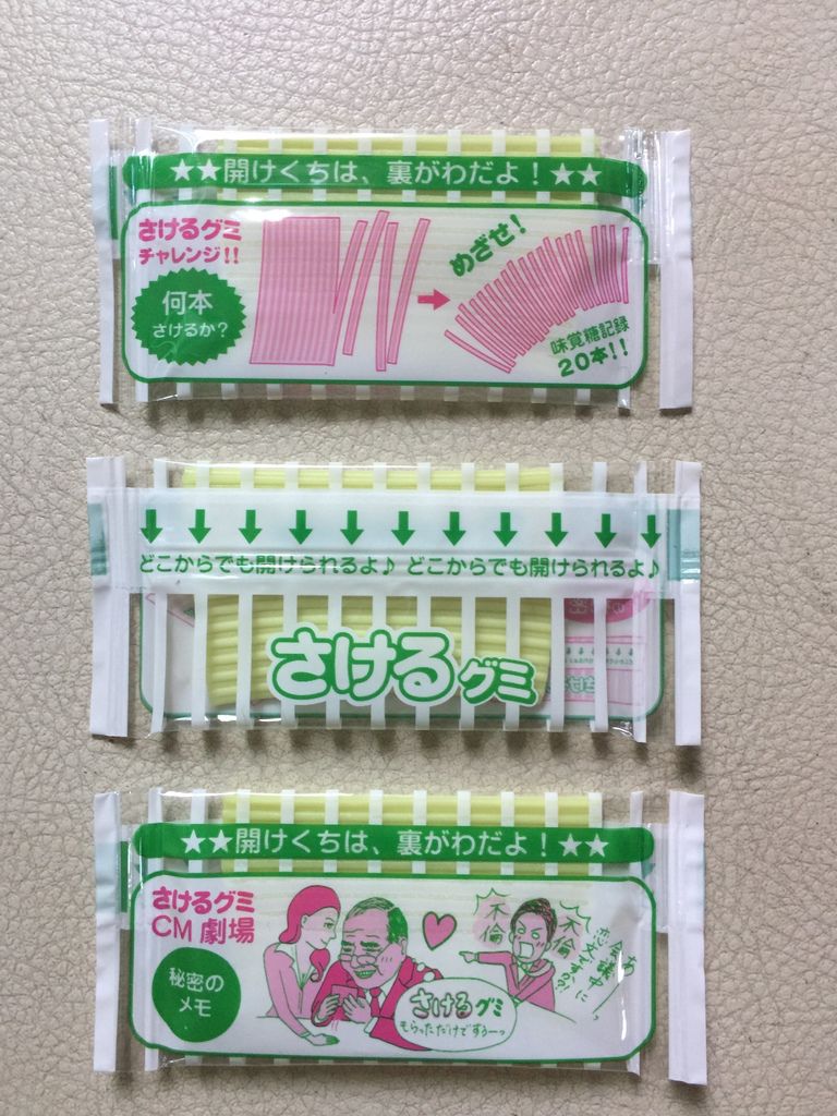 一包有7枚,打開後看你要一條一條撕下來吃,還是要一條一條不要斷變成很長的一條的吃,就是增加一點新的樂趣,還滿好玩的,