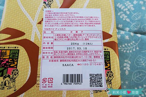 背面則寫上產品資訊、原料以及賞味期限。有別於其他保存期限太短的伴手禮,春華堂的鰻魚派從出廠開日始計算會有60天的賞味期限。