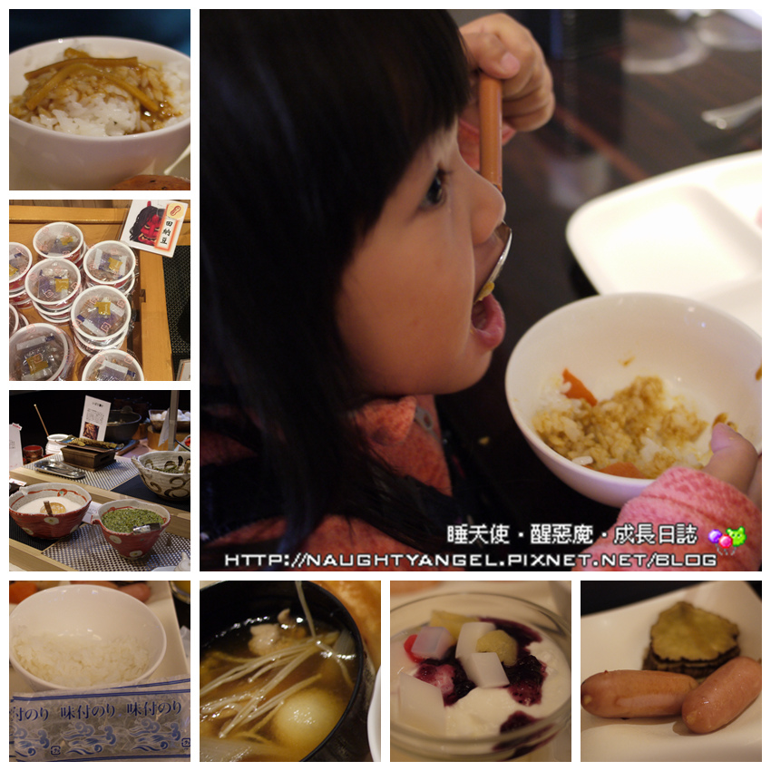 隔日的早餐富有秋田當地特色,東北的米都相當好吃,早上不論是來碗咖哩飯或是海苔包飯,都令人大快朵頤,還有煙燻大根(右下)也是地產特色之一。