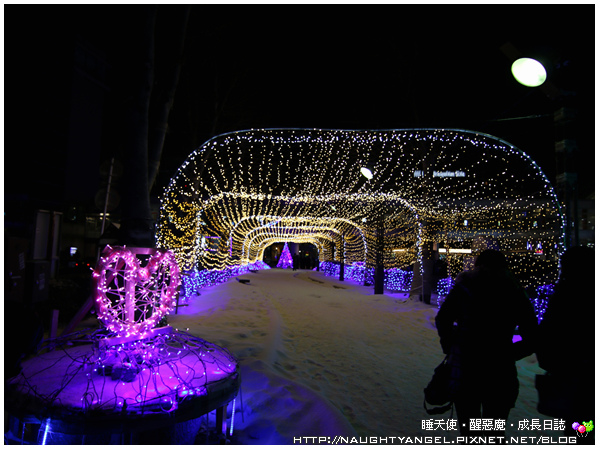 晚上出去晃晃,在飯店外有個光廊隧道配上白雪非常漂亮,很喜歡東北區,不擁擠很舒服,即使在這重要交通樞鈕上應該算是市中心的地點,也依然讓人輕鬆自在。