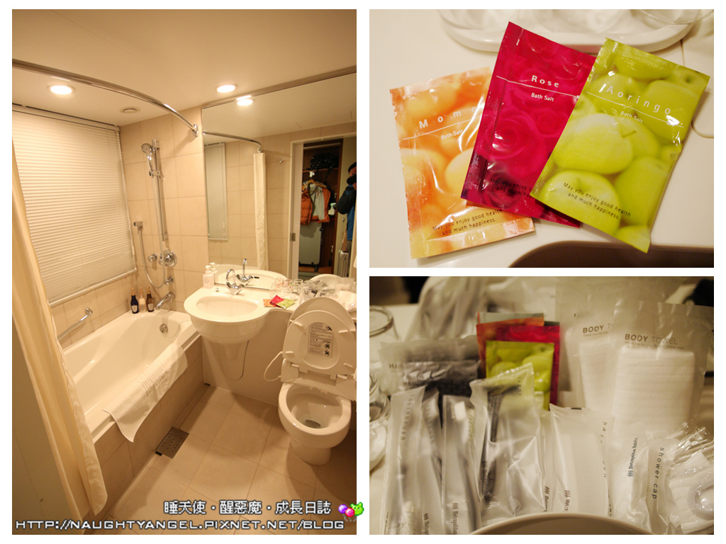 衞浴空間也夠大,還有個浴缸,提供的盥洗備品齊全且另外有附三種不同口味的入浴劑供泡澡使用。
