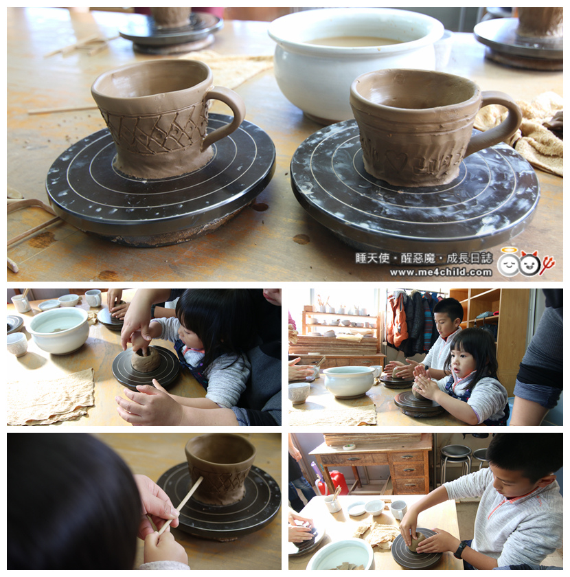 滿足了小吃貨,林小光選了陶器製作,或許鶯歌也有這類的體驗,但小孩選了它,我們也就....反正我們也沒玩過這類的DIY,第一次體驗,發現玩陶土超有趣的,連老木也跟林小亮聯手做了一個馬克杯,雖然我們捏一捏會走山,但老師都會適時的來救我們XD。在這裡其實不太需要擔心語言的問題,因為看著老師做,也就大概了解該怎麼下手。做陶器有點比較麻煩的是,成品需要較長時間(陰乾、燒陶)才能收到(郵資部份可以跟同行朋友一起集運)。