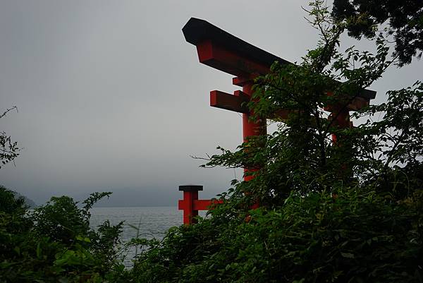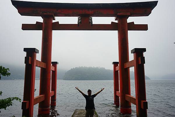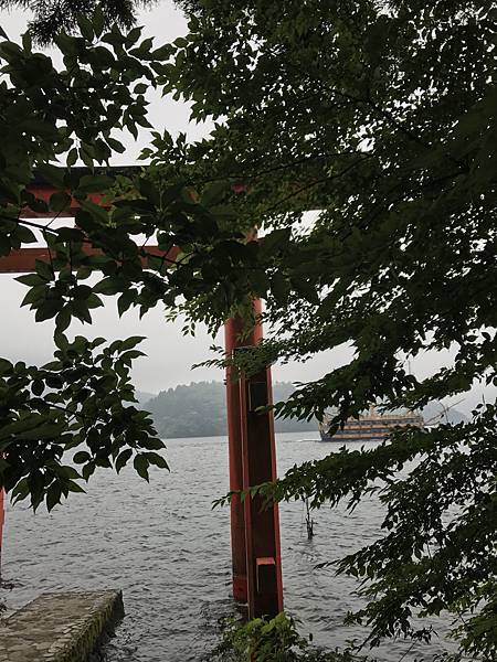 箱根神社的參道往下走,一直走到湖邊,就可以看到那個在船上看到的大鳥居.