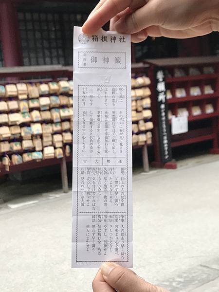 來到箱根神社,先前往上方的神社參拜,再來抽一支籤.