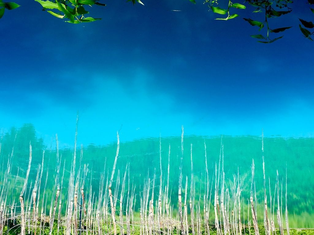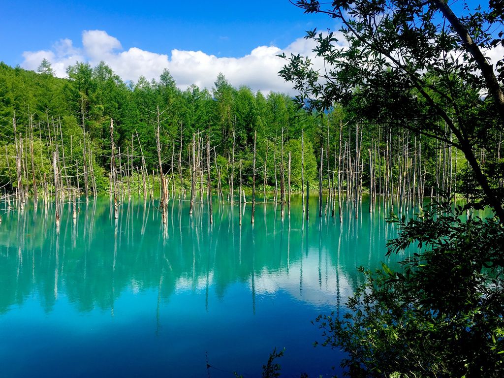 我很幸運,看到的青池就是他在網路上照片呈現的我最喜歡的樣子,天時天氣好是主要原因,當然陰天有他蕭瑟的美,但晴天下的青池好艷麗喔!