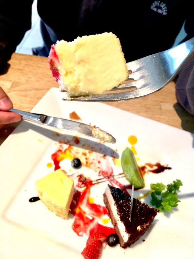 本來我預期這三塊會是很雷同的味道,沒想到我們兩個人吃起來喜好都不一樣,表示他還是有做出味道和口感上的差異,可惜就可惜在LeTAO經典三味乳酪蛋糕盤的光彩一開始就被另外一道壓下去了,相對沒那麼驚艷,覺得有點對不起他/___\..,LeTAO台灣也開了,要吃到一樣口味的乳酪蛋糕更容易,但要複製這一碗北海道鮮奶做成的甜品我覺得是有點難度的,是吧是吧。