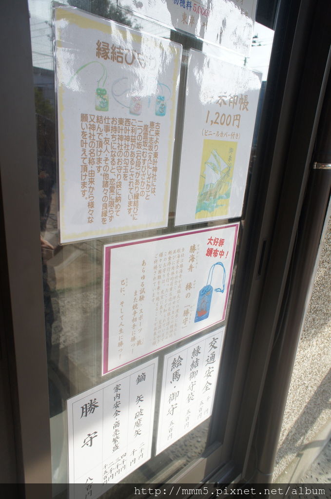 在西叶神社購入勾形玉石,接著到東叶神社參拜完後,將勾形玉石放入在東叶神社購入的御守袋中