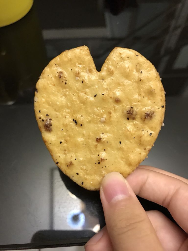 京都之花仙貝是黑胡椒口味,外型是一個愛心形狀,仙貝的脆度比嵯峨乃燒還要脆,而黑胡椒的香氣十足搭配起來也滿好吃的。