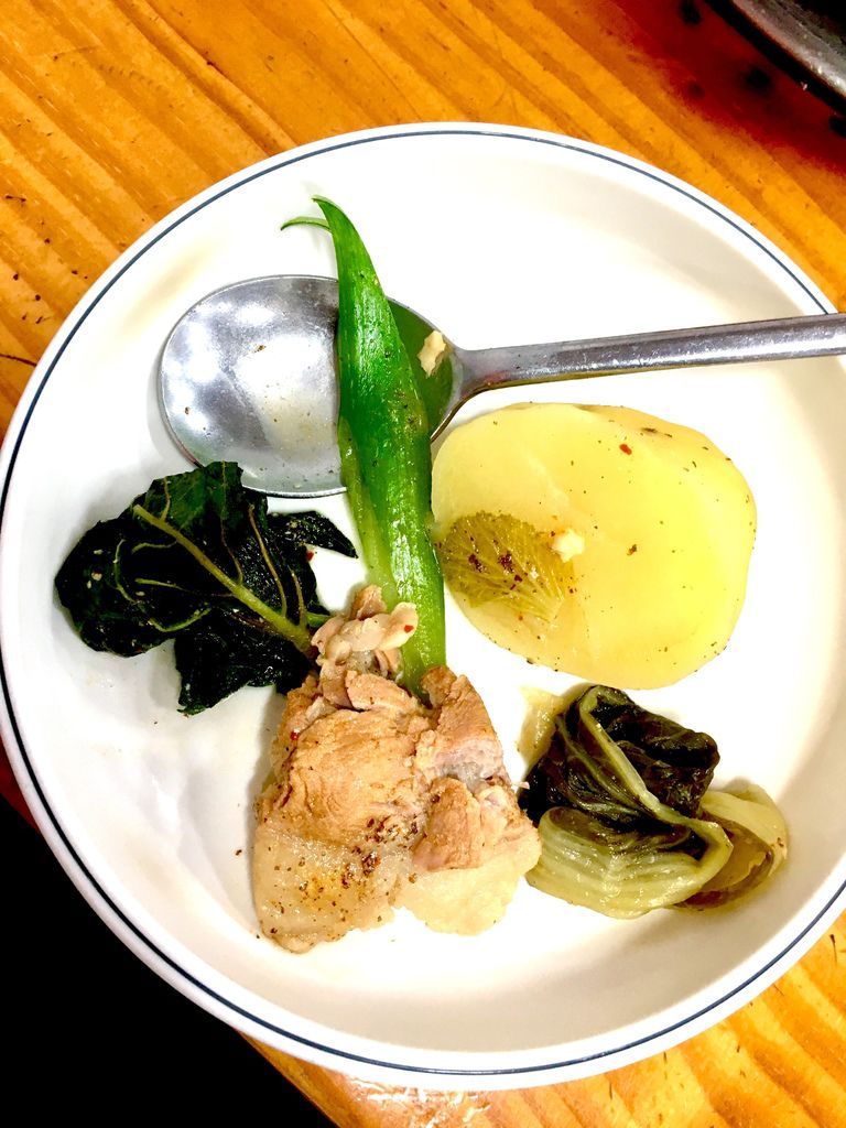 馬鈴薯竟然是Q的! 而且有馬鈴薯特有的一種新鮮香氣,我猜他先蒸過才放到湯裡,除了香,口感好,形狀也沒化掉。 ,這個馬鈴薯讓我們深深著迷,但兩人份這一鍋馬鈴薯只有4塊QQ