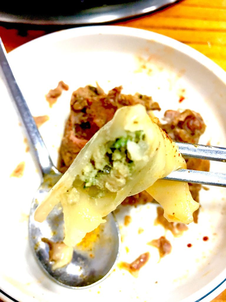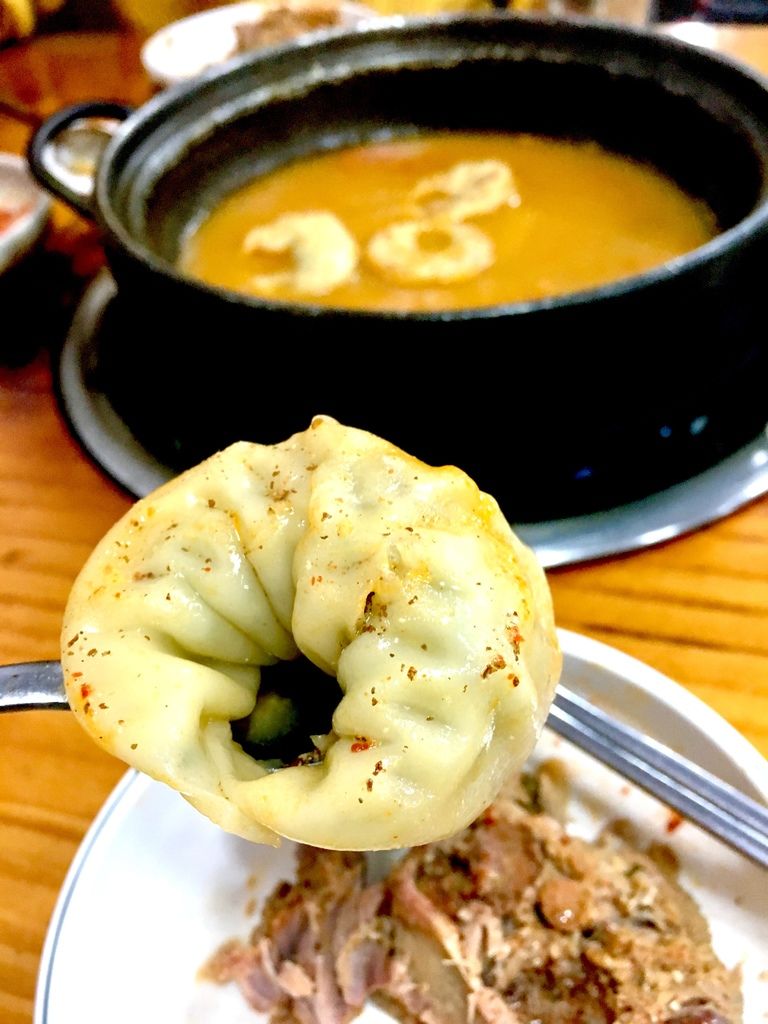 最後我們下餃子,餃子本身挺清淡的,煮到他有點破掉讓湯流進去後味道整個豐富濃郁了起來! 肉汁給了水餃靈魂,我只能這麼說XD 本來我想衝另外一家餃子店體驗一下韓國餃子究竟是怎麼一回事的,但周末快閃行程實在沒機會,龍山元祖的餃子給了我很大的信心。