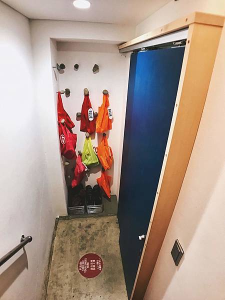 打開藍色大門後,要先把鞋子裝進袋子裡掛牆上,再換成拖鞋上樓。