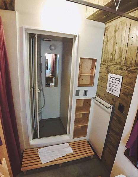 拉上門簾之後,衣服就要先放到外面的空格裡,青旅沒有提供免費浴巾和盥洗用具,