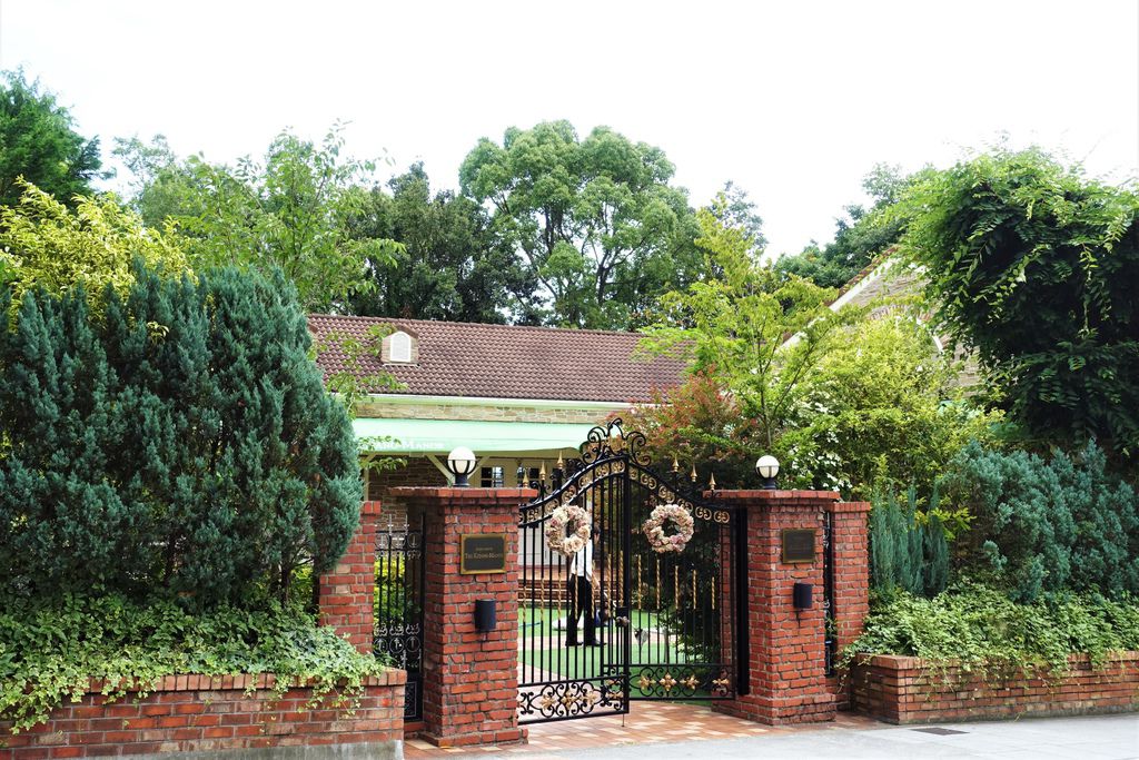 這戶氣派的洋房叫「The Kitano-Manor」,查了一下,是間可以讓客人用餐或舉辦婚禮的莊園餐廳,看起來很高級,門戶上的花圈好似為準新人們所準備的。