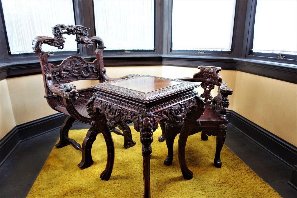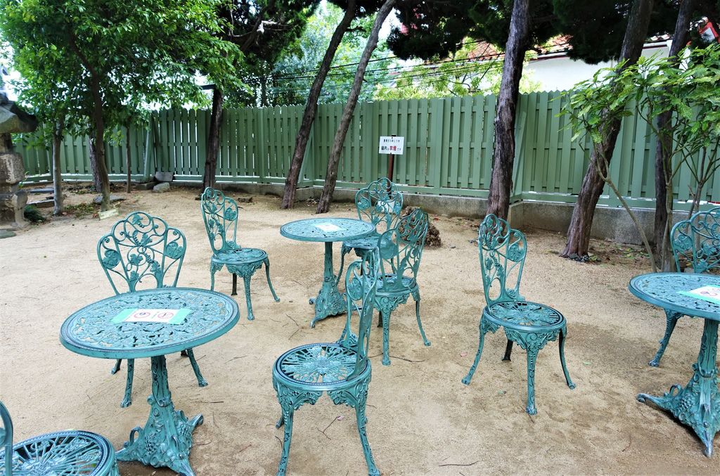 外面還有一個庭院,這花園鑄鐡桌椅,就跟現在在玩的〈動物森友會〉裡的道具幾乎一模一樣耶