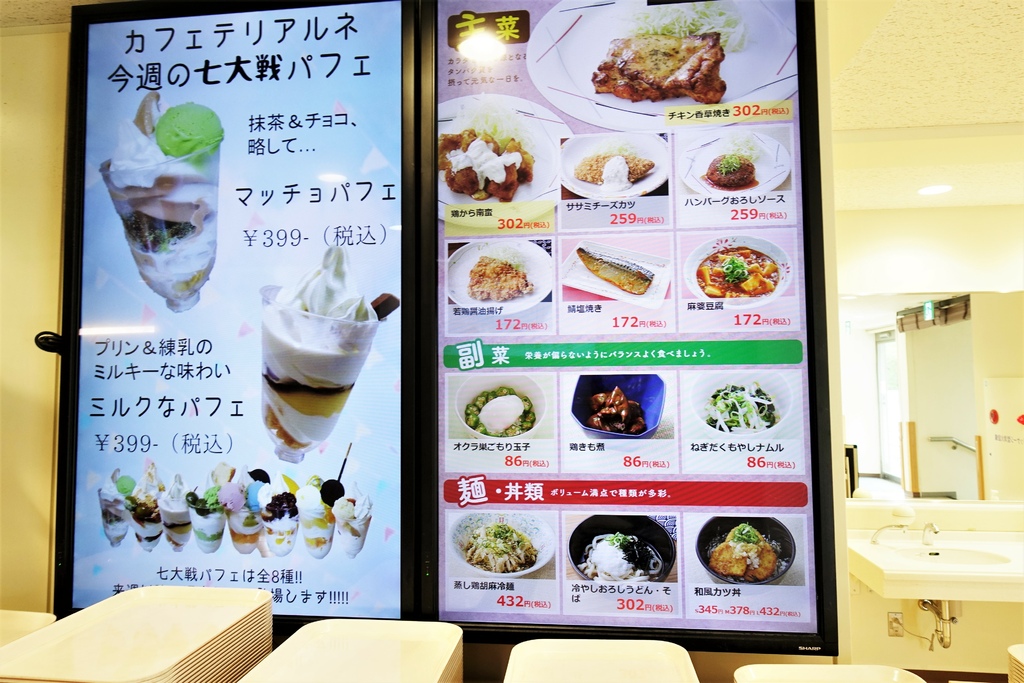 不得不說,日本的大學餐廳好整齊乾淨啊!而且不知道是不是因為日本人飲食習慣的關係,食物有很明顯的分區,可以在每區好好做選擇(小孩子才做選擇,我都要