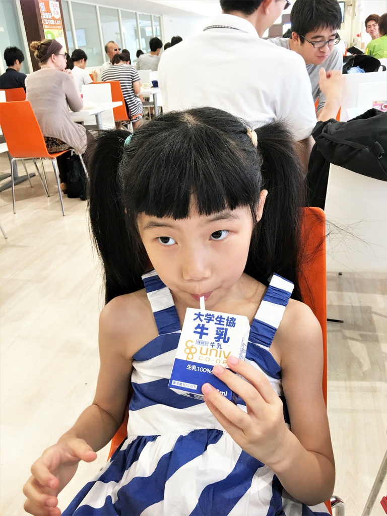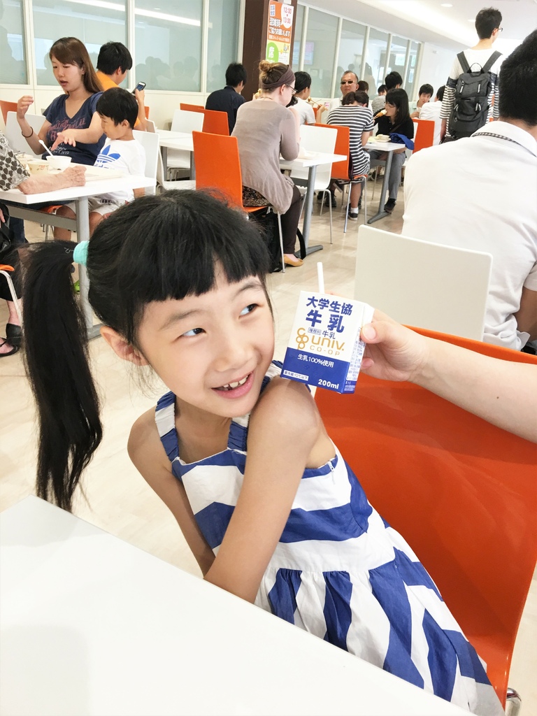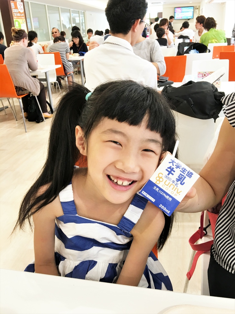 有點忘了小妞和外婆點了什麼,只拍到小妞開心的在喝牛奶,她說好好喝啊!直到現在她還很想念日本的鮮奶。