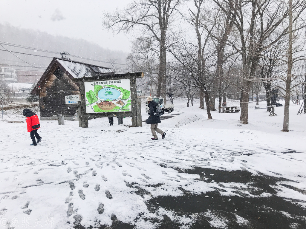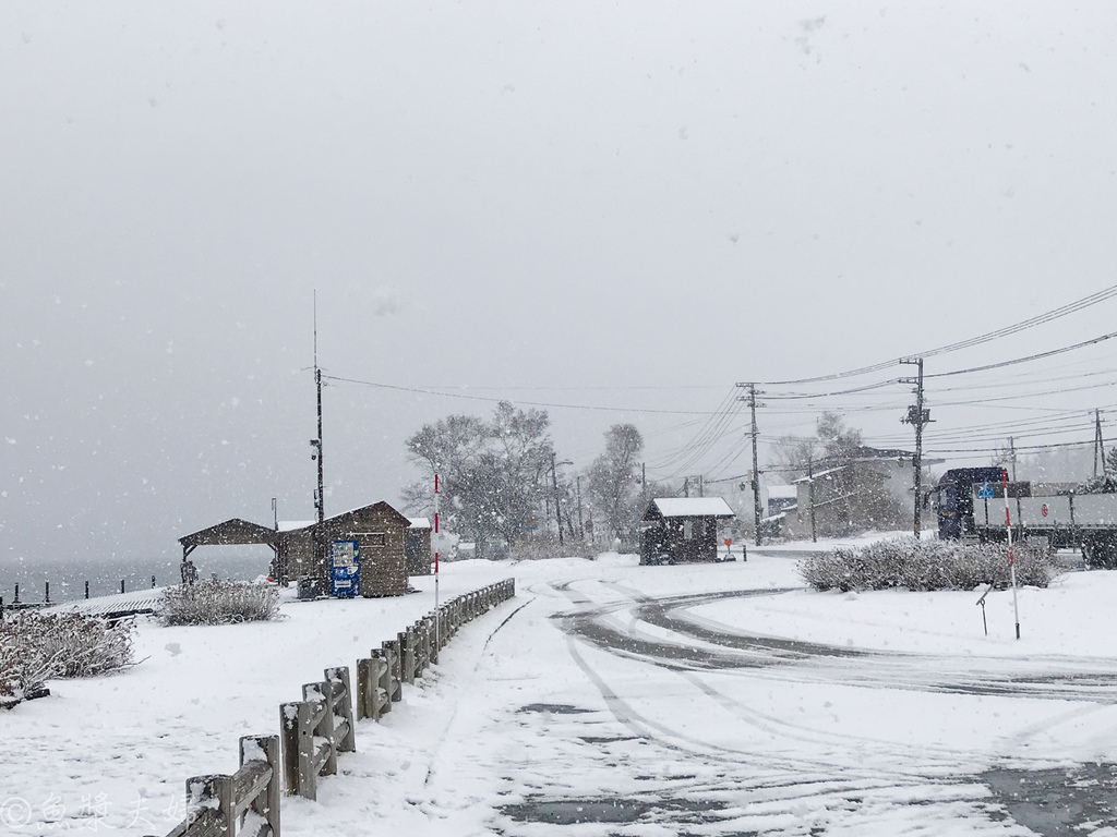 這次觀賞昭和新山的角度是從洞爺湖八景(壮瞥溫泉)看過去,但雪的顆粒實在太大了,打在身上啪啪作響,不少人都下來上個廁所後,就躲回車上休息了。