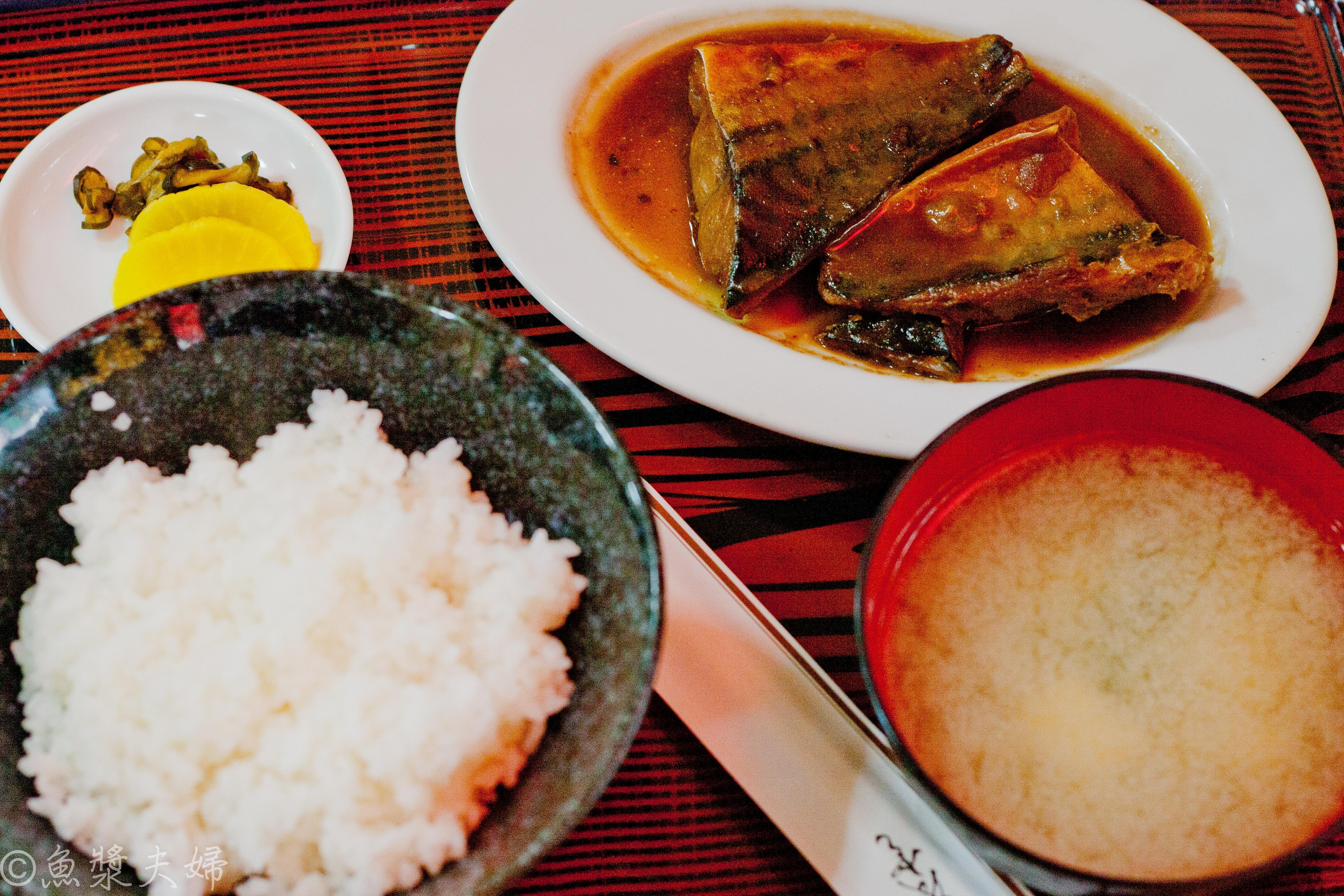 長野屋食堂的煮鯖魚有時用魚肚,有時用魚尾,用醬油配一點點甜味煮得軟嫩入味。吃第一口時,醬汁的鹹香芬芳會慢慢在嘴裡化開,先是醬油的豆香,接著是像是味噌的豆甜,再品嚐細瓣的柔軟魚肉,有著鯖魚充滿DHA風味的油脂香氣,接著扒一大口的粒粒飽滿米飯,再喝一口味噌湯或吃一口醃菜喚醒味覺。