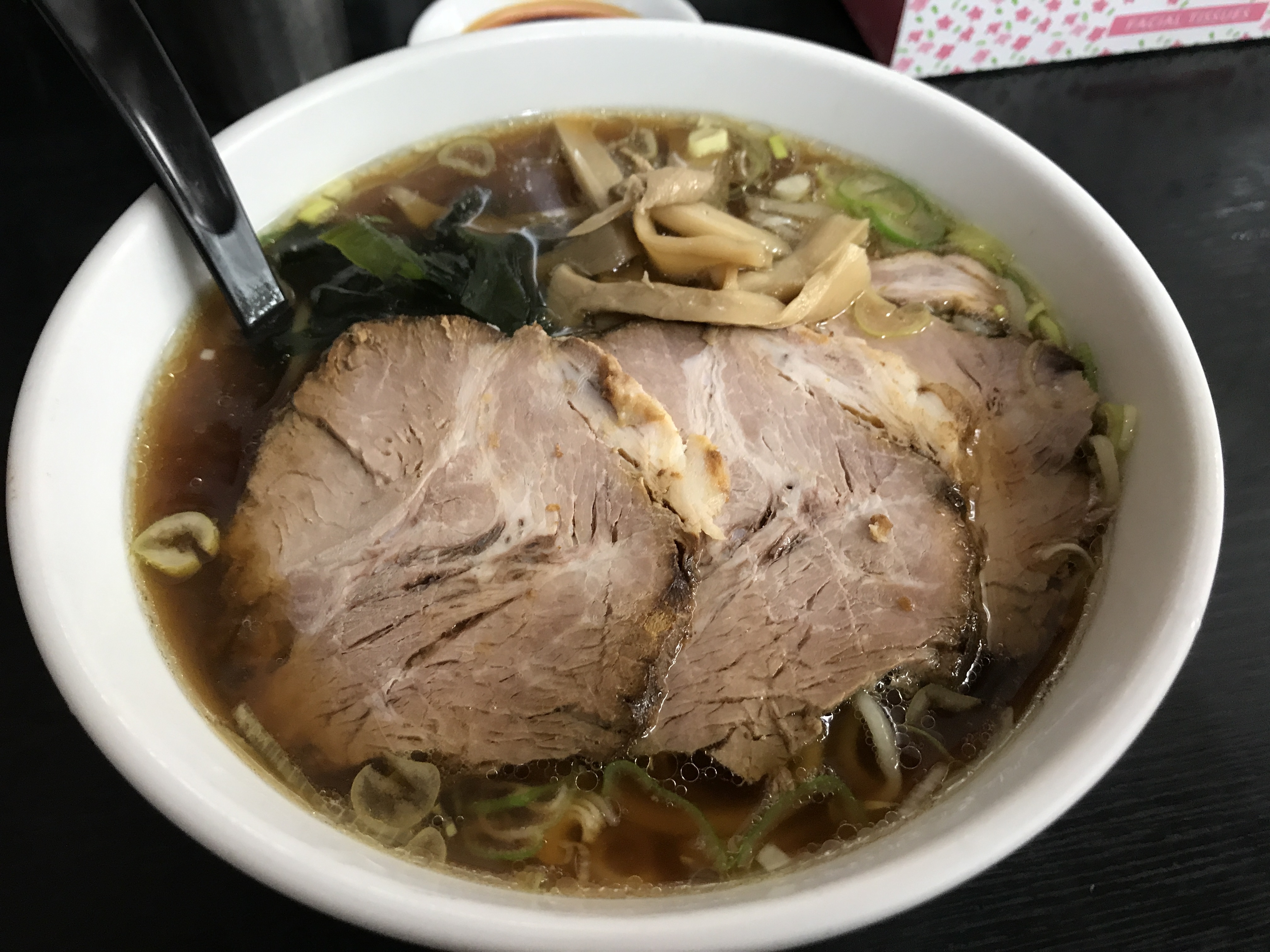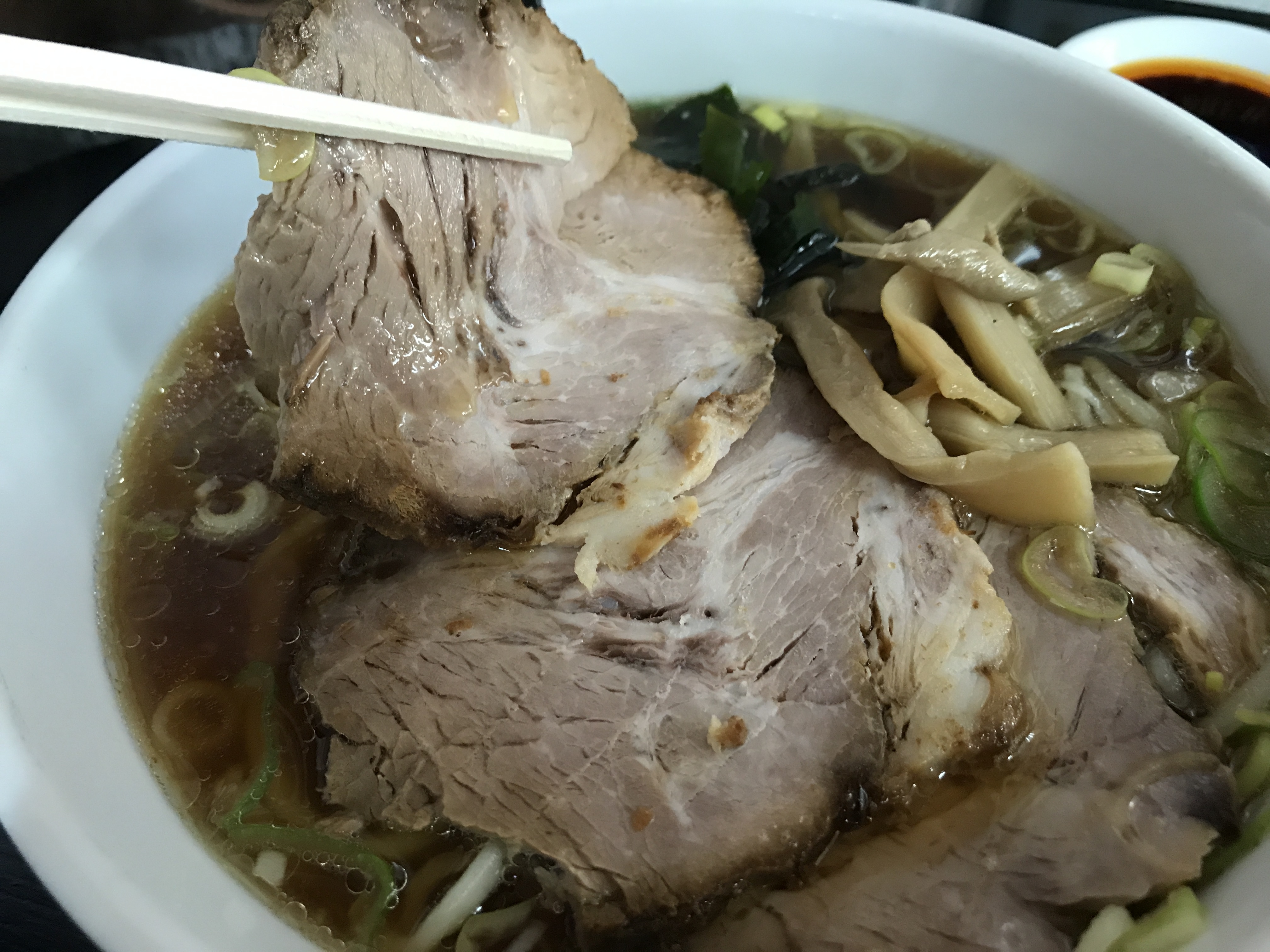 叉燒與湯底皆是醬油風味,鹹度較高,本身的高湯厚度不太夠。將叉燒泡在湯裡一段時間,本來大多瘦肉的叉燒多了點肉汁,入口時鹹氣頗重,令人想吃一大口帶有咬勁的粗麵。