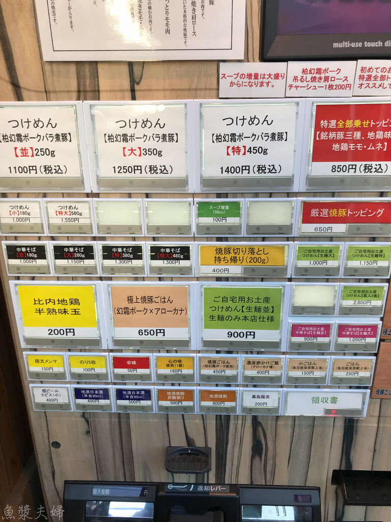 雖然常常說不要抱太多期待,但畢竟富田沾麵是算是日本第一名的沾麵,價格可能也是前幾名。一碗大份的沾麵1400円,再一份叉燒拼盤1000円,我食量比較大,再點一個員工餐飯450円,加起來都快3000円。算是沾麵界很少見的價格,因此要求不要抱太大的期待真的是很難。