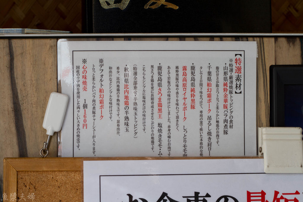 老實說,富田的價格算是偏高的,若是大份量以上,都已快接近1500円。而全部都來一份的配料,已經偏向於一碗東京都內的平價拉麵。不過這幾年拉麵的價位是有高了一些,無論是因為消費稅調漲的,或是提高成本的,甚至是有些新店,一登場便是以中上的價位進入戰場。