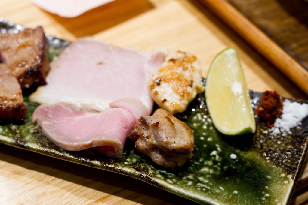 開始用餐之後,其實除了富田老闆之外,其他的師傅都有上來巡了巡所有人的用餐狀況,我想至少三四次吧。吃了幾口後,我看看這個拼盤,感覺好像怪怪的。又看了看同一排一起吃麵的其他人,感覺好像少了點東西。仔細一看,五份全部特製配料的拼盤,就只有我的少了一顆蛋。