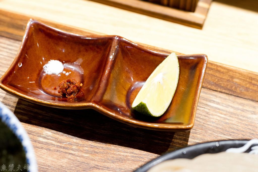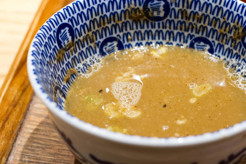 或許是為了掛湯,這次的湯明顯的比之前的稠上許多。渣感很重但都還算細緻,沾麵湯可以說是有點糊,但掛湯能力是真的好,風味的話我覺得因為糊感較重,鹹氣較高。搭配上含水的麵條,算是很平衡的設計,我很喜歡。