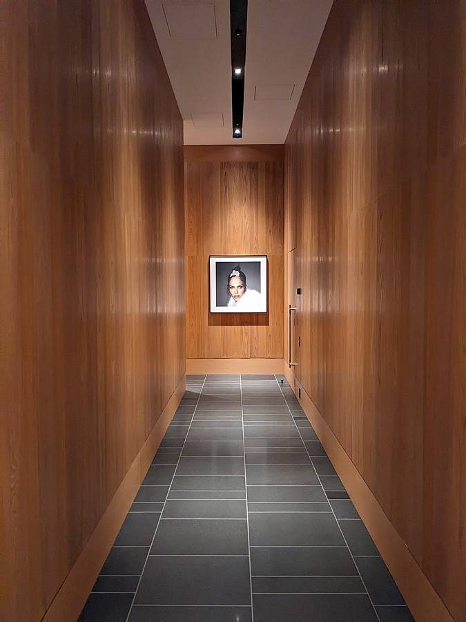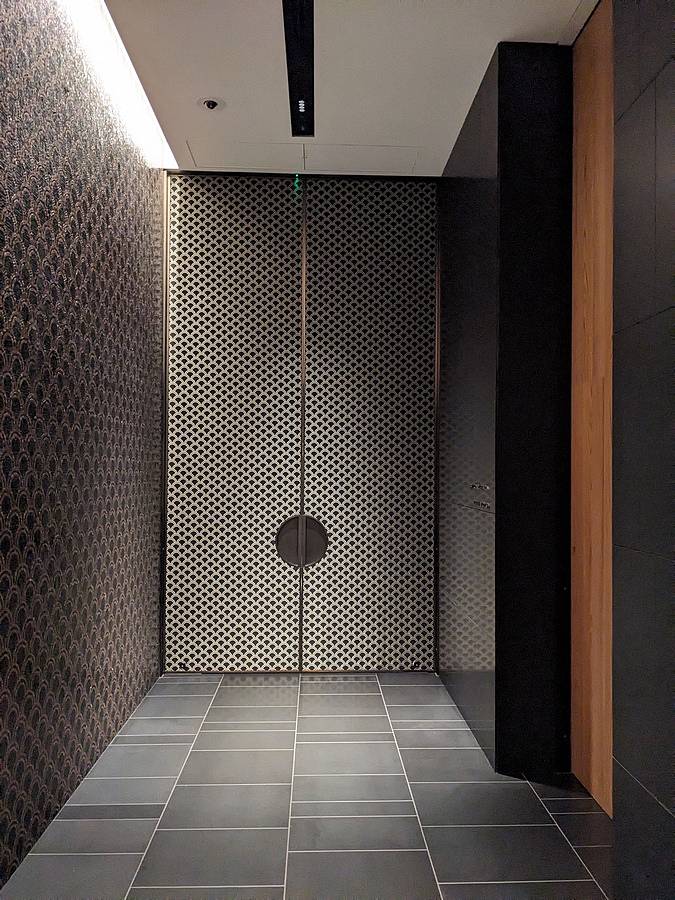 走出電梯一開始還搞不太清楚門口在哪,沿著長廊走到底看到遠方應該是門口才對,走過去就自動開門了,飯店服務人員跟我們確認後,就帶我們入座。