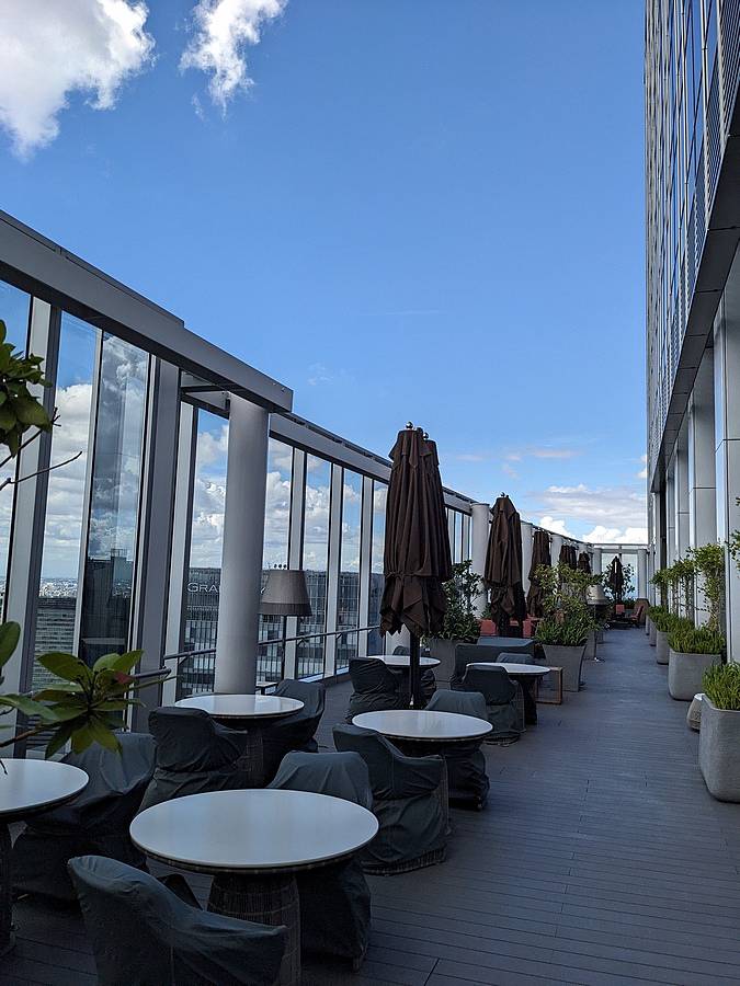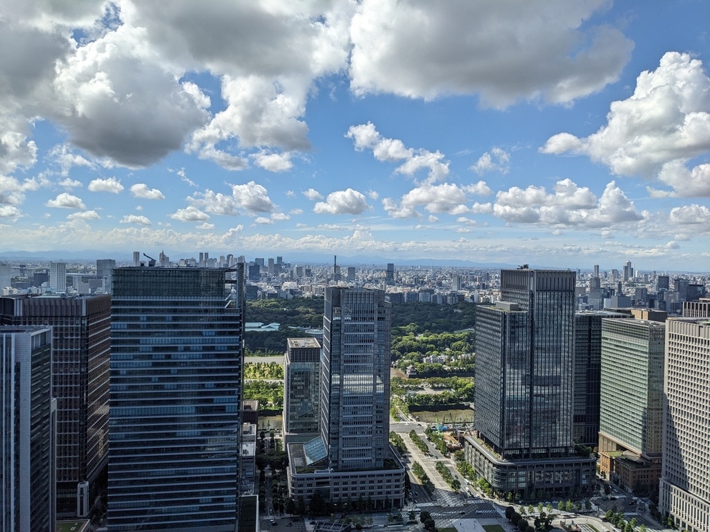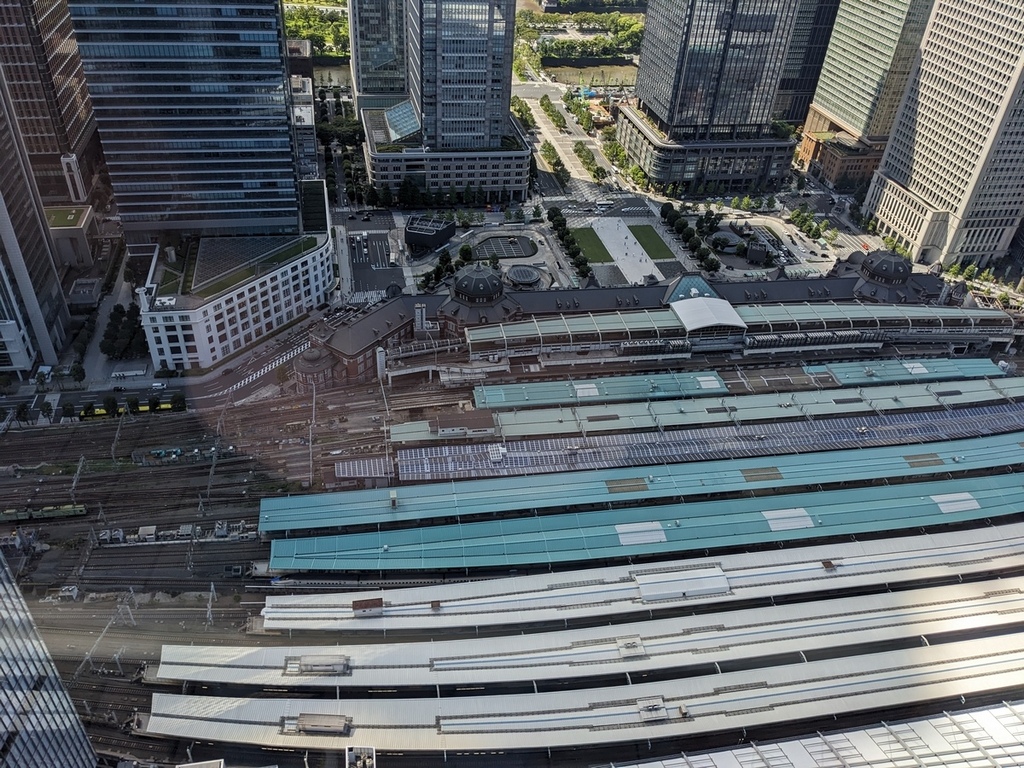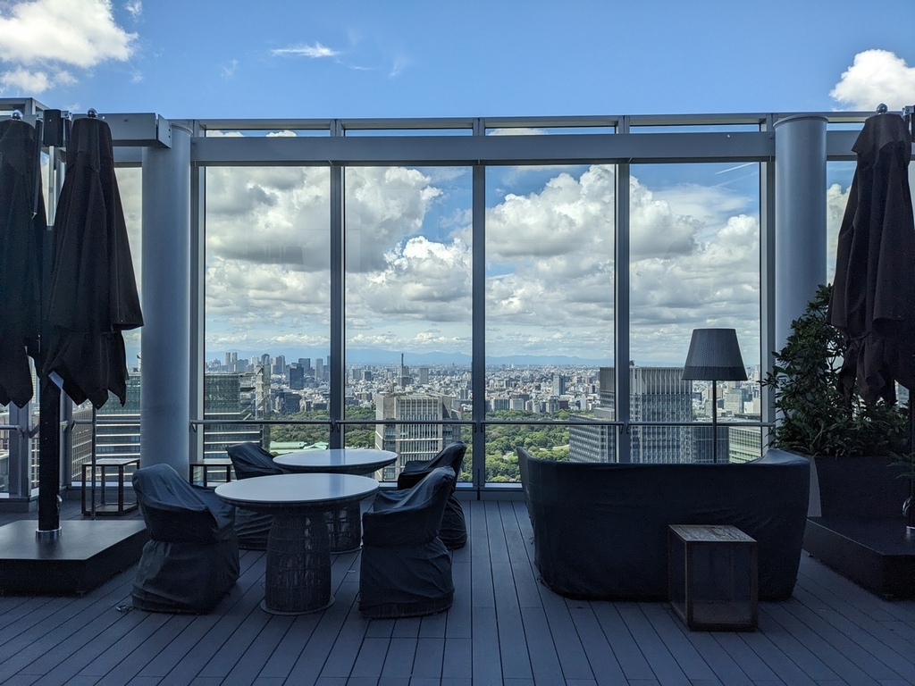 整個用餐時間為2小時,最後結完帳後,我們到戶外的空間來看看拍照,可以往下俯瞰東京車站,還特別詢問了富士山在哪個方向,大概也是蠻多用餐的人有問過吧,直接立刻就能回答我們。