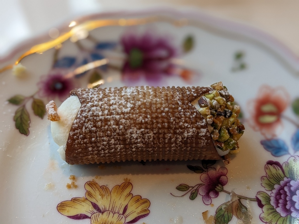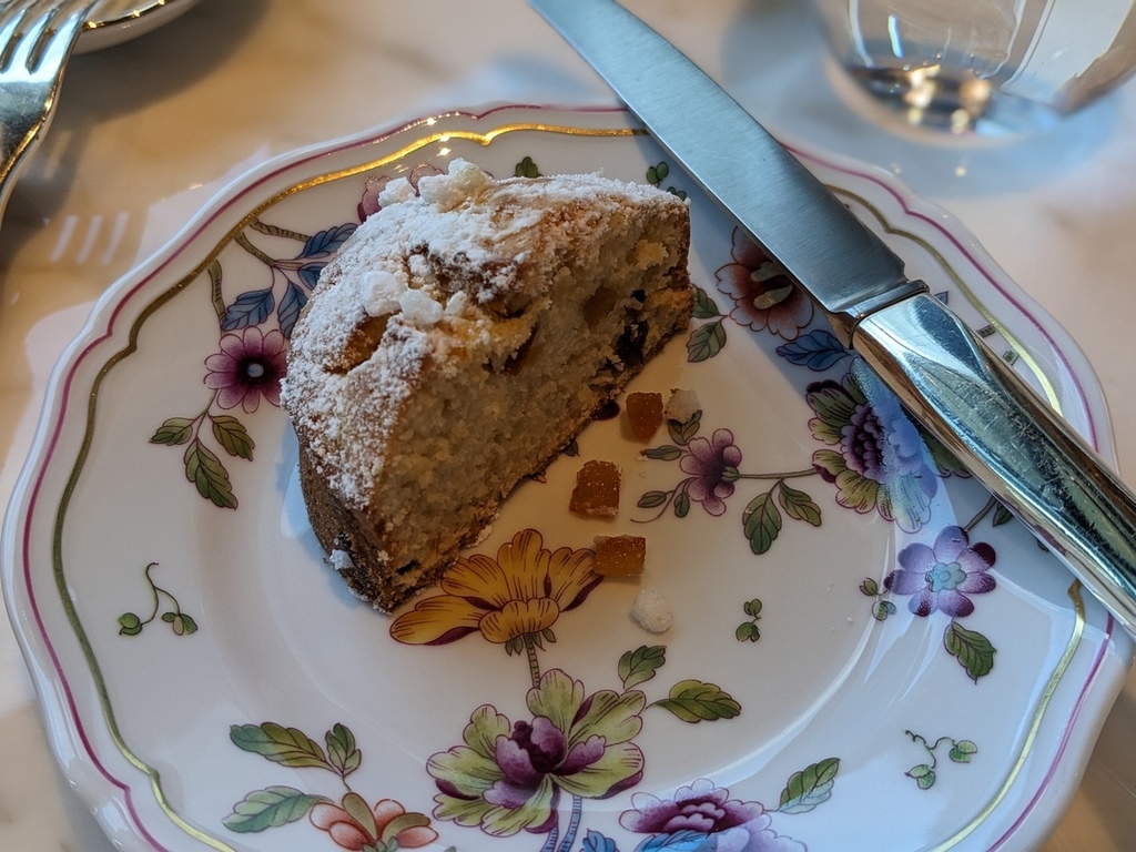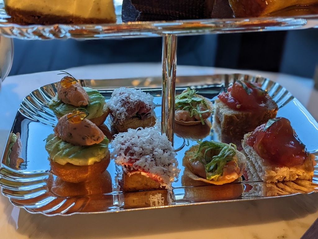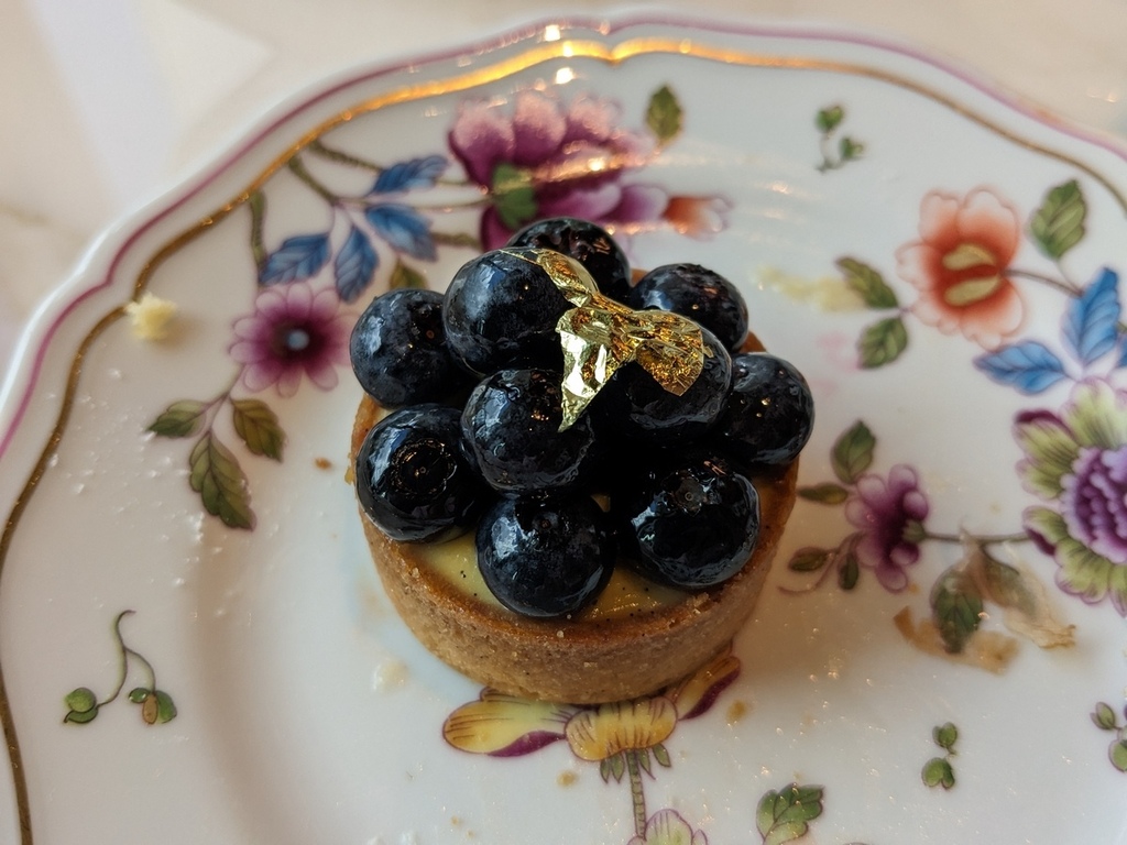 每款甜點跟鹹食都超乎期待的好吃,藍莓塔上還有金箔點綴,之前吃法餐點過的甜點ババオラム也有在架上。