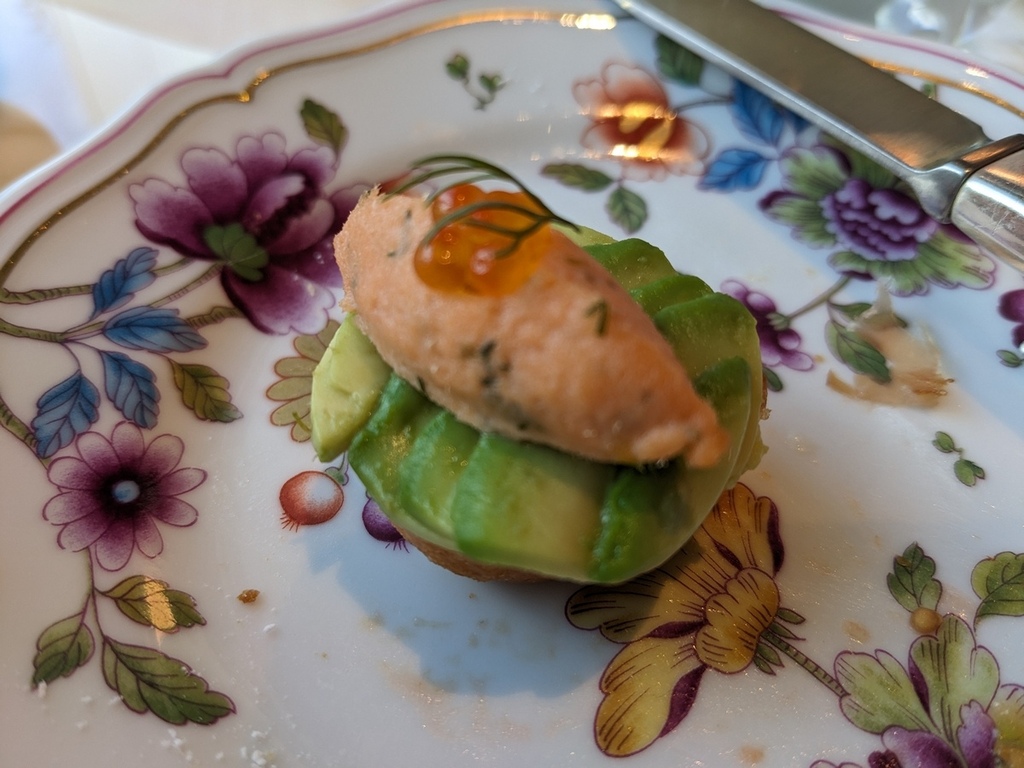 雖然說是下午茶,不過用餐時段從中午11:30分時段一直到19:15最後入場,所以我們就訂了11:30當作午餐來吃了。搭乘淺草線從寶町走到東京中城八重洲,1樓有個專屬連通道,走過去剛好就是飯店大門的迎賓車道前,飯店人員看到我們詢問後,引領我們去搭電梯,直接抵達40樓。