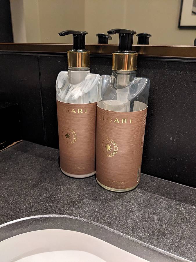 喝到肚子都是水只好跑一下廁所,廁所裡的備品也都是寶格麗的。