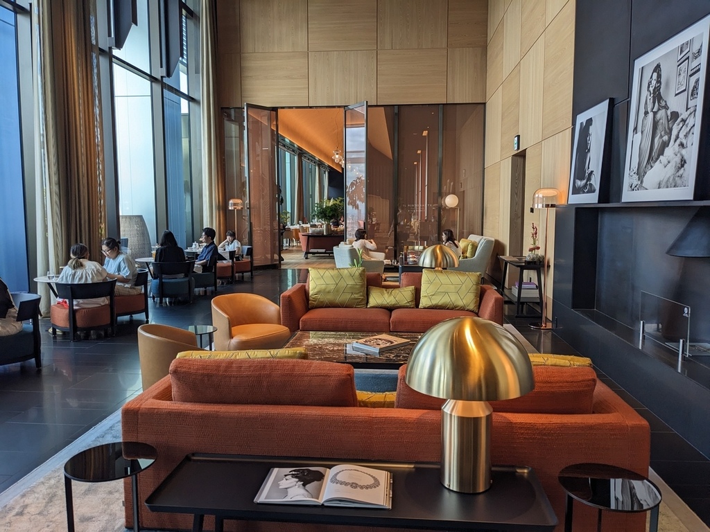 下午茶大廳酒廊氣派挑高好美,用餐空間靠窗部分只有5個圓桌面向東京車站方向,圓桌比較適合坐2個人剛好可以邊吃邊欣賞40樓窗外風景,後方沙發區可坐4人大概有2-3組吧,更裡面的則是另一間義大利餐廳「Il Ristorante – Niko Romito」。
