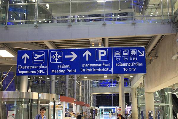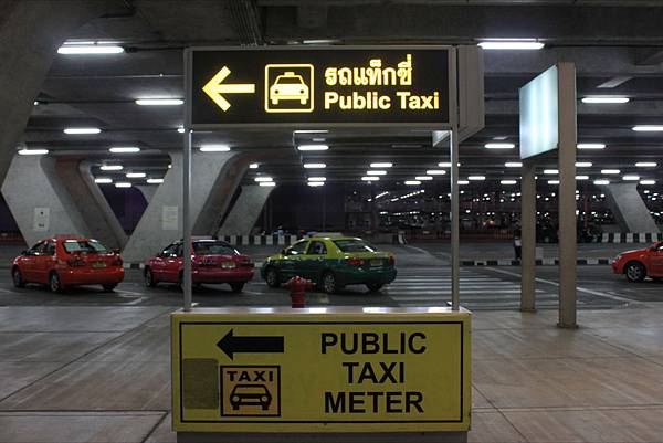 機場的入境大廳是位於曼谷機場的2樓,出關後請先找寫著'To City"的指示牌,上面會看到畫著計程車的圖案,沿著指示牌往下一層樓後走出機場(排班計程車在機場外面),即可看到排班計程車的櫃檯。