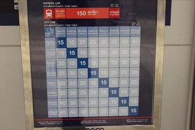 CITY LINE有快慢線之分,建議選擇慢線(每站都停,一共有八站),一是價錢便宜(最貴不超過45泰銖),二是班次密集,每15分鐘一班,可節省等車時間,而機場捷運線CITY LINE從機場至市區約30分鐘車程。(機場捷運較適合行李輕便的旅客搭乘),不論換乘MRT線或BTS線,在各捷運車站內都有免費的捷運地圖可索取,請多多利用。