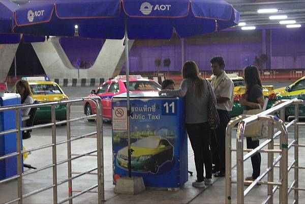 二. 有些不肖的排班計程車司機還是會欺騙觀光客、漫天開價,因此記得一定要確實告知櫃台服務人員你要去的飯店名稱及地址,並在上車前跟司機確認是不是"METER"?(跳錶),如果上車後司機不按錶,可立即要求下車並告知機場櫃檯人員。通常從機場至曼谷市區,跳錶的話大約200~300泰幣左右,千萬不要被騙了!(若走高速公路的話乘客須另行支付過路費,一次約20~45泰幣)