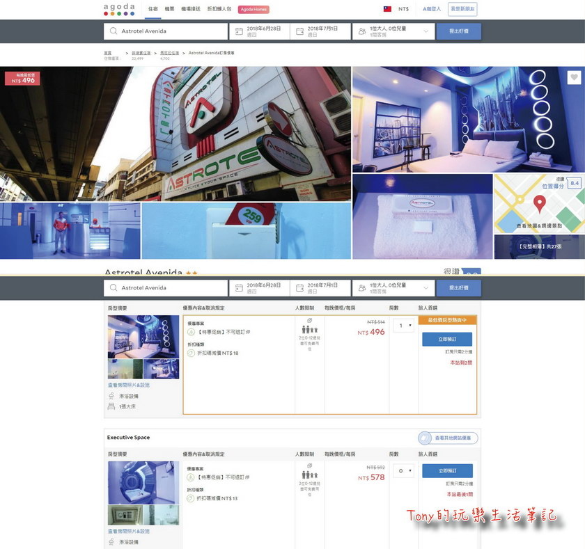 既然決定以捷運LRT 1線做為交通,所以在挑飯店時,就以LRT 1各站點附近的飯店做為主要考量。而竟然也讓我們透過訂房網站找到一間雙人房才500元~600元台幣的飯店。而且看起來很新穎,似乎很棒,一開始看評價也都還不錯,我們也就打算一人各住一間,這樣住起來爽快一些,沒想到就在到飯店後,又是驚嚇又驚訝了一次,這在後面再來說說