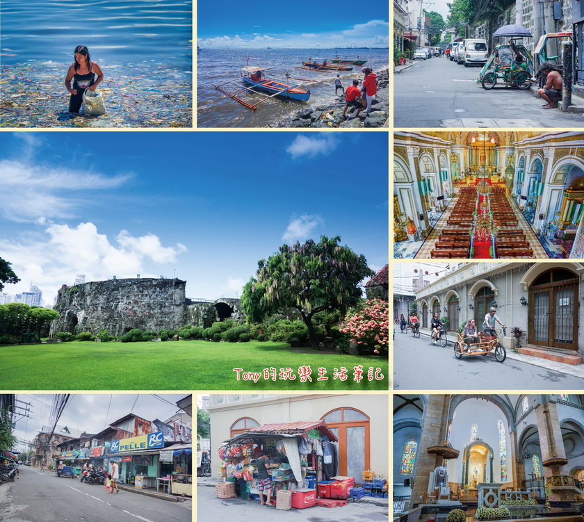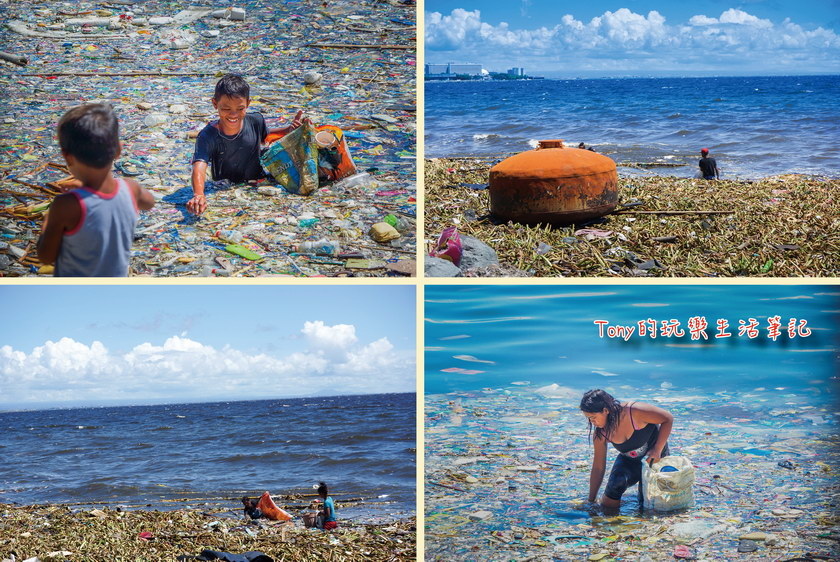 而這是馬尼拉灣帶給我的第二個驚奇。因為洋流關係,把垃圾全衝來這個岸邊角落(一共是兩個小區塊)。就這樣看到有人站在海裡檢拾寶特瓶。其中有一群看起來還是一家人吧﹖難得看到這樣的景象,很難想像旁邊就是馬尼拉最美的區域,卻有一群人是這樣的在過生活。雖然知道會有這種貧富落差,但是卻是在最美的馬尼拉灣看到,還是免不了一陣驚訝