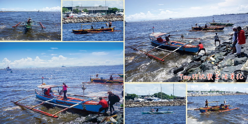 在馬尼拉灣看到第一個驚奇,有幾艘螃蟹船在這邊。注意看,竟然是用拉繩子的方式在兩個地方間來回。本來還以為是用來補些小魚的,後來竟然看到有一群人過來,很熟練的上了船出發,這該不會是另一種奇特的交通船吧﹖真的是很特別的交通工具,好想也上船去試看看一下的