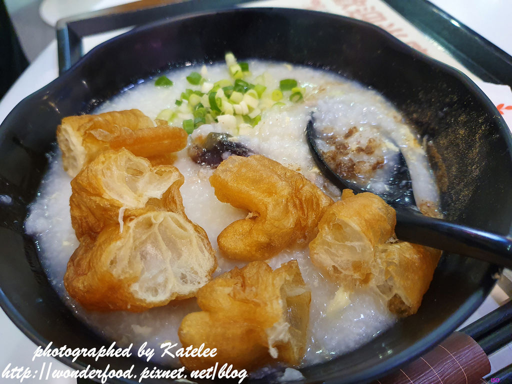 報到托運行李後去美食街新東陽吃了皮蛋瘦肉粥90元和肉羹麵90元