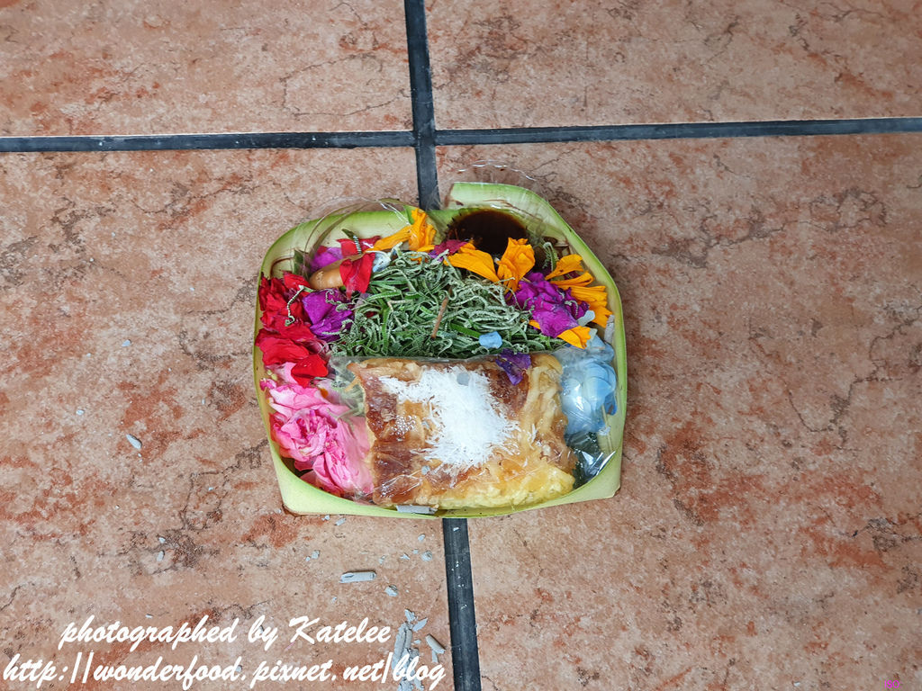 原來這是巴里島人祭祀的貢品,是很神聖的,小心別踩到了