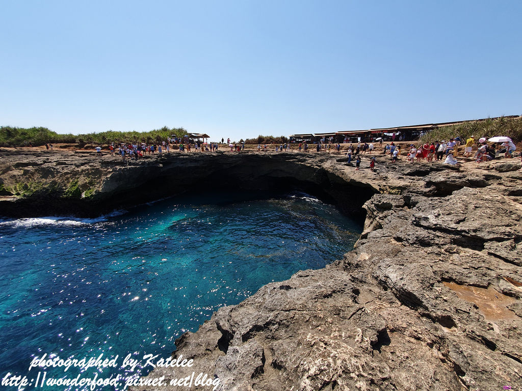 一個很深的海蝕洞,海水藍綠的令人發毛